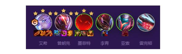 1、陣容成員:艾希禮、普朗克、墨菲特、李青、亞索、雷克頓