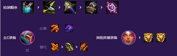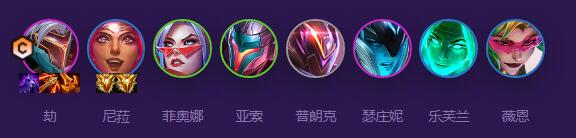 一、陣容成員:劫、尼菈、菲奧娜、亞索、普朗克、瑟庄妮、樂芙蘭、薇恩