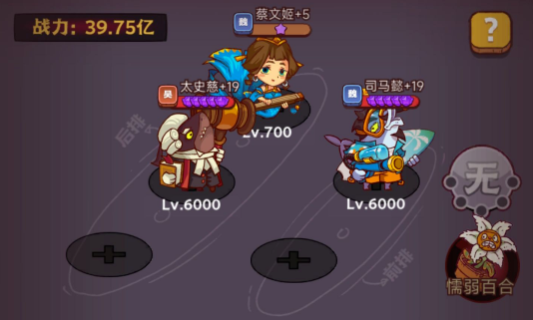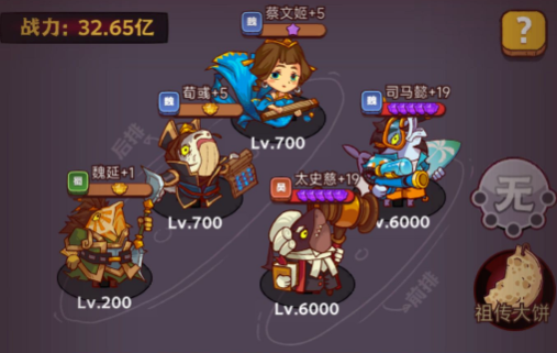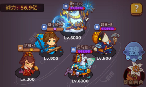 前期實力夠強不卡關可以用這套是沒問題的,三個武將上陣的原因是,減少武將的抬手時間,速度推圖。通用推圖陣容:司馬懿、太史慈、蔡文姬(張飛)、荀彧、魏延(200級)
