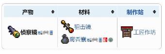 使用1個狙擊鏡和1個腐香囊,可以在工匠作坊合成1個偵察鏡。