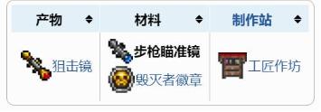 使用1個步槍瞄準鏡和1個毀滅者徽章,可以在工匠作坊合成1個狙擊鏡。