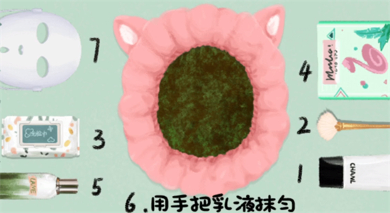 《收納物語》西瓜小姐通關攻略:1、進入關卡之後,玩家需要給西瓜帶上發呆,然後塗洗面奶,使用刷子刷勻。