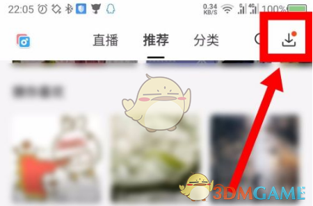 1、在貓耳fm首頁點擊右上角的下載箭頭圖標。