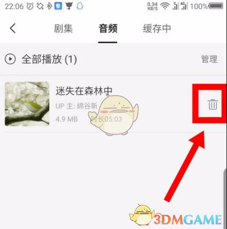 3、如果想刪除下載的音頻,可以點擊後面的垃圾箱圖標。