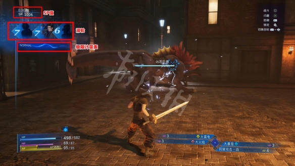 劇情過後對陣凶惡巨獸。困難難度下凶惡巨獸的血量還是比較高的。注意多配合D.M.W.的忍耐、0MP/AP消耗等隨機Buff,來使用技能和魔法。旋身尾擊等招式則可以通過閃避火防禦來抵擋。