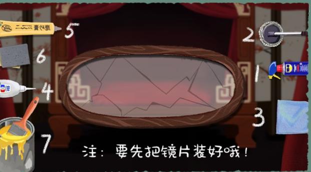3、然後我們開始拼鏡子,拼好以後開始清理鏡子,工具使用順序如下圖所示: