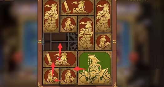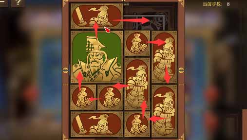 8、左下的水平方塊向上一格,小方塊貼邊讓將軍向左走一格即可完成本關。