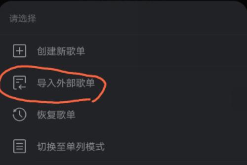 4、點擊歌單列表右邊的三個小點圖標,選擇「導入外部歌單」。