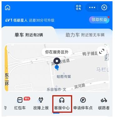 1、開啟支付寶app,搜索哈啰出行,選擇單車-客服中心。