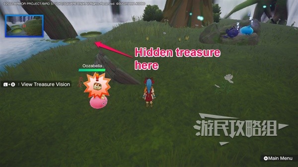12.按住L+B可以查看/切換夥伴的視野,藉此可尋找附近隱藏的寶物,然後在下圖位置找到寶物【史萊姆寶石】。
