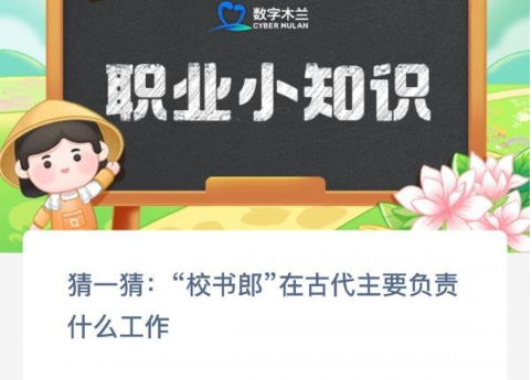 2022支付寶螞蟻新村12月13的題目已經更新了,今天的題目為:猜一猜校書郎在古代主要負責什麼工作?正確答案是什麼?在私塾當先生還是校勘整理圖書呢?很多小夥伴可能還不太清楚。下面小編就為大家帶來了正確答案分享,希望能幫助到你。