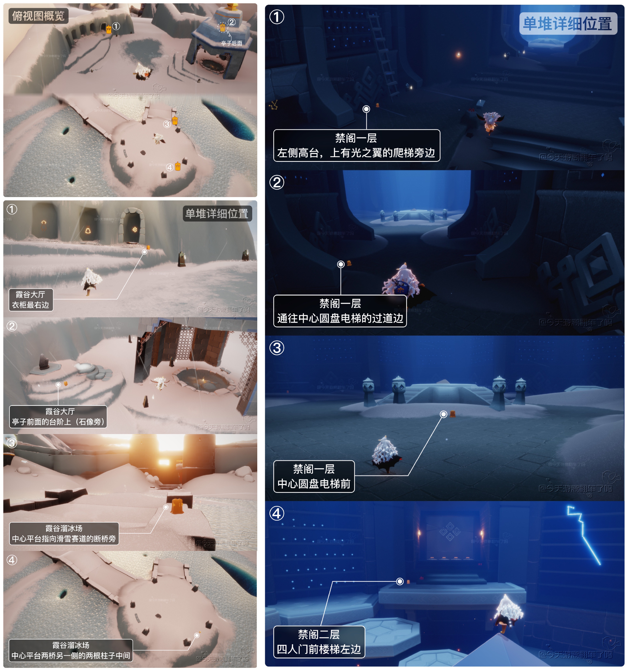 今日季節蠟燭位於霞谷、禁閣,小夥伴們可參考下圖位置進行尋找: