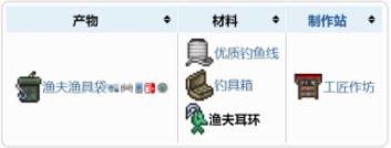 1個優質釣魚線、1個釣魚箱以及1個漁夫耳環在工匠作坊可以合成1個漁夫漁具袋。