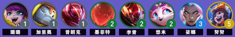 1.陣容組成:【璐璐、加里奧、船長、石頭人、盲僧、貓咪、琴女、努努】;