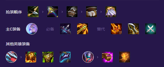2.裝備推薦:主c艾希【破甲弓、颶風、死亡之刃、無盡、決斗轉】;