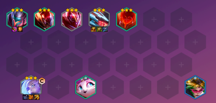 1.陣容組成:【寒冰、鱷魚、船長、石頭人、壓縮、盲僧、貓咪、VN】;