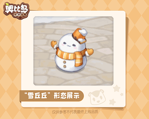 「雪丘丘」圓圓的腦袋上頂著一個橙色油漆桶,會隨著雪花飄落扭動圓滾滾的身軀,可可愛愛的像顆糯糯的雪糰子!在最高形態時,還會進化成為雪人,伸出戴著手套的小手朝小奧比們熱情地打招呼~