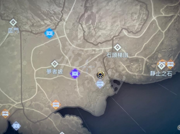 一張有河,順著河找就可以了。一張有兩個有符文的石頭,明顯就是靜止之石附近,那兩個符文中間的山洞。最後一張,唯一一個有長長的樓梯的就是夢想者到石頭梯田那個位置。
