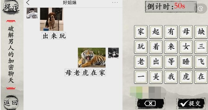 以上就是小編整理帶來的玩梗大師破解暗號男人悄悄話攻略,抖音玩梗大師破解暗號男人悄悄話怎麼過分享,更多關卡攻略,請點擊關注手游網更新!
