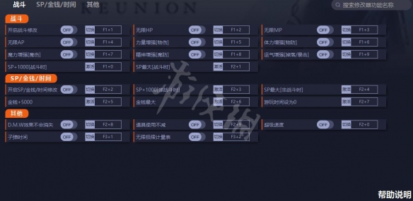2.開啟修改器各主初始項再使用各子修改項[無主初始項則不用開啟][主初始項:如開啟...修改]。