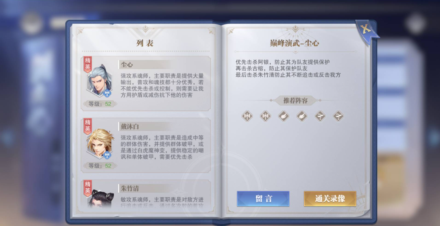 5、劍塵心傷害極高,普攻滅隊且巔峰狂暴機制讓我們必須先手秒掉他,劍塵心第一回合會開啟增益技能,基本上不會普攻和開大,因此火舞第一回合先手眩暈需要不斷重複開局,直到控住所有人。