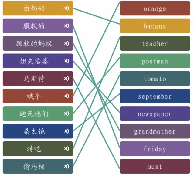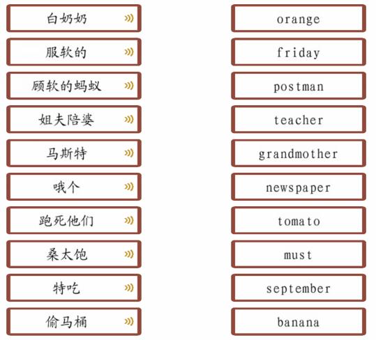 1、這一關給出了英語的讀音的文字,讓我們連線正確的單詞