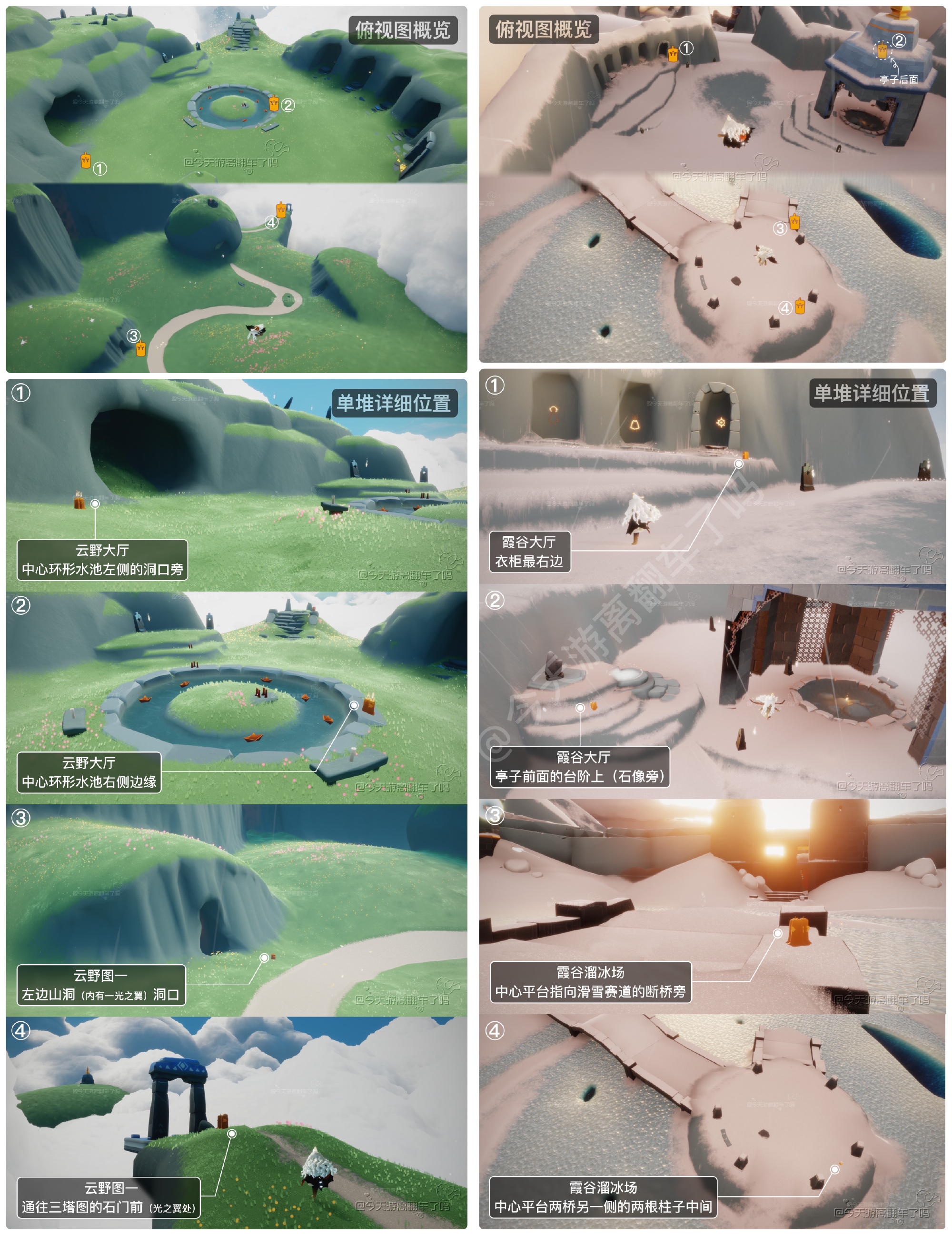 今日季節蠟燭出現在雲野和霞谷,一共兩組,小夥伴們可參考下圖位置進行尋找: