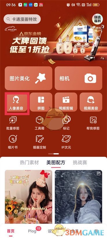 1、首先打開美圖秀秀軟體進入到美圖秀秀頁面中點擊【人像美容】;