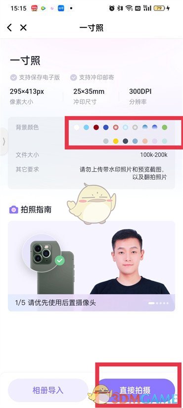 3、進入到此頁面之後設置一下背景顏色之後點擊【直接拍攝】即可。
