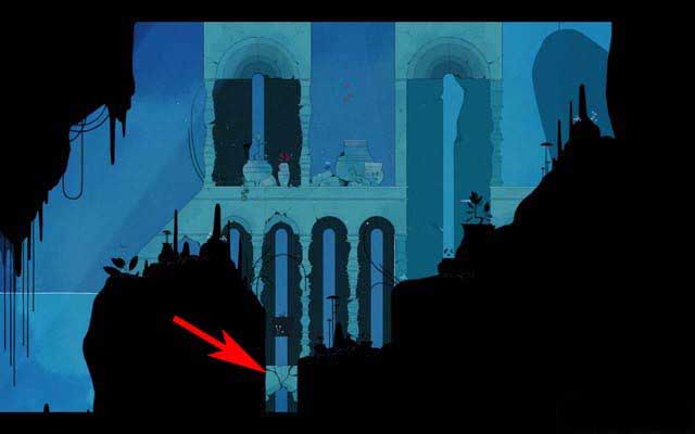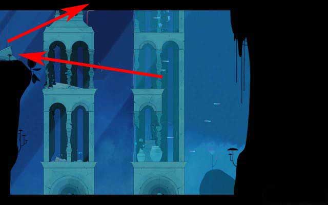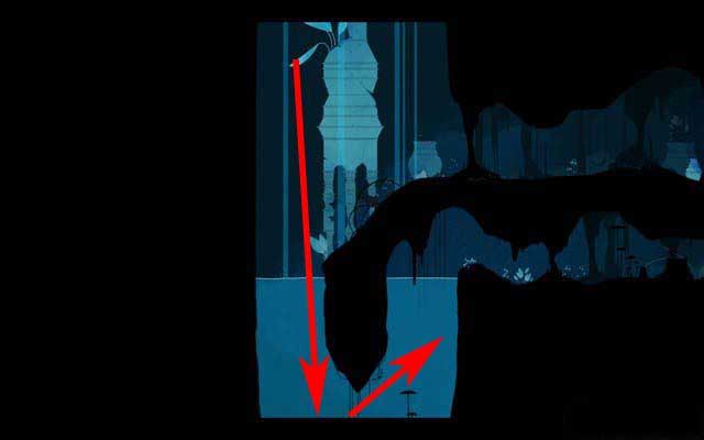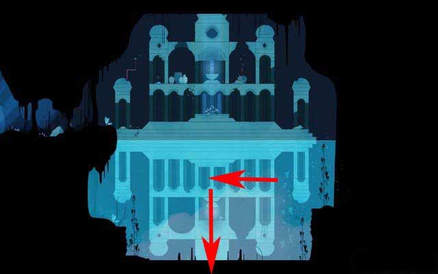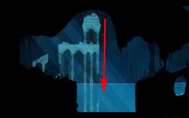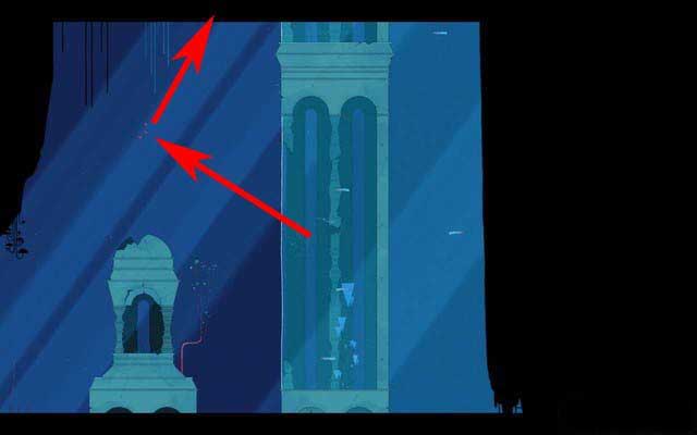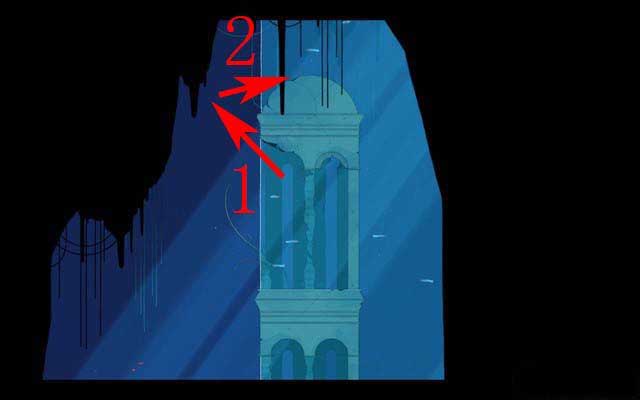 游到水底之後即可獲得寶石,而出去的方法則是擊碎如下圖箭頭所指的裂縫。