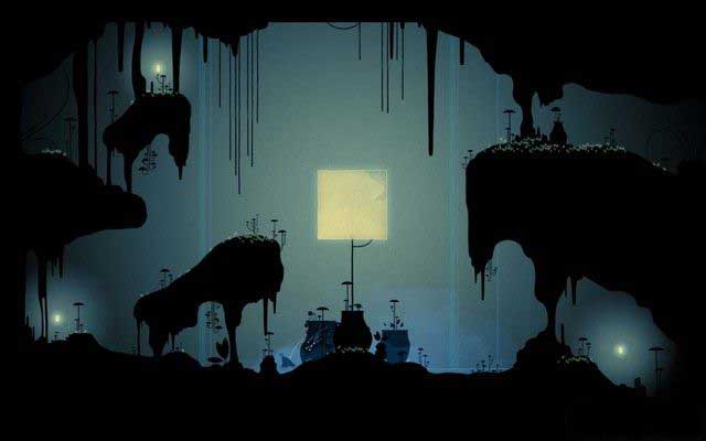 動畫結束之後,進入一個很黑洞中,這里的蘑菇是發光的,只要你靠近它們就行了。