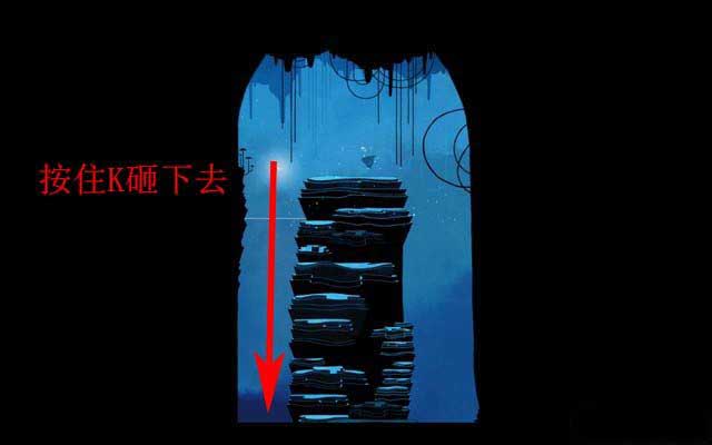 再次進入黑漆漆的房間,使用跳躍+K將地上的藍色物體震到上面,然後整個房間就會頓時變亮。