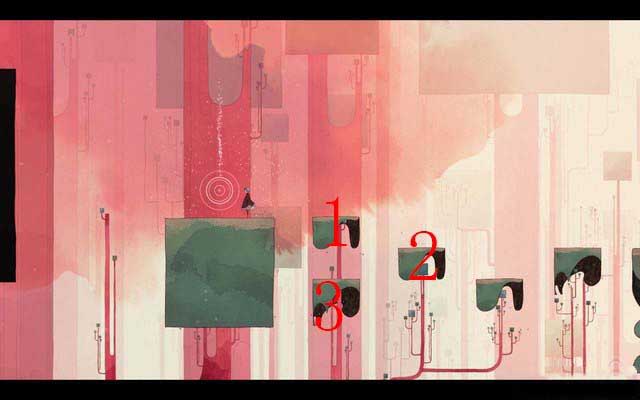首先,從平台2跳到平台3上,然後趁掉下去之前跳回到平台2上,最後,快速從平台2跳到平台1,再跳上有寶石的平台。