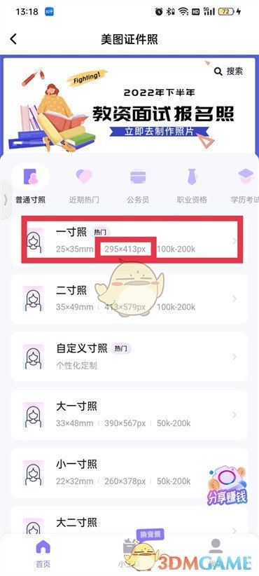 2、進入到證件照頁面之後有一個【一寸照片】看下面的數字記住中間的數字;