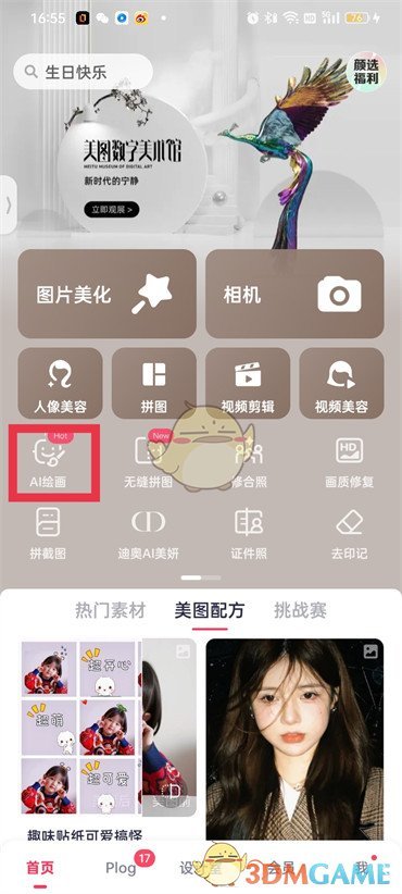 1、首先打開美圖秀秀軟體,進入到美圖秀秀頁面之後點擊【ai繪畫】;
