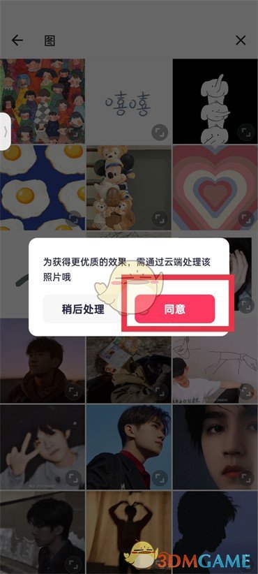 3、在圖片選擇的頁面中點擊一張圖片,如果彈出來一個小框點擊【確認】;
