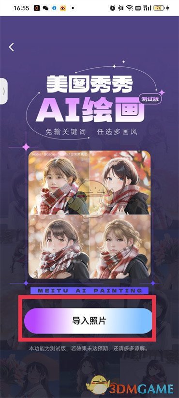 2、進入到ai繪畫頁面之後點擊【導入圖片】;