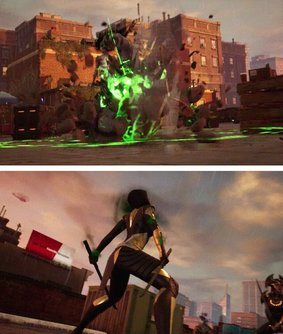 這樣「不講武德」的做法當然不是一個英雄該有的戰鬥方式,因此它會消耗戰鬥中獲得的英雄氣概,但值得注意的是,像小蜘蛛這樣的「弱勢英雄」則是專門強化了這種環境攻擊,這也是自身能力相對較弱的蜘蛛俠的主要戰鬥方式,反映到游戲中則是蜘蛛俠利用環境道具對敵人造成傷害時,傷害會更高,而且一些卡片會讓小蜘蛛不再消耗英雄氣概。