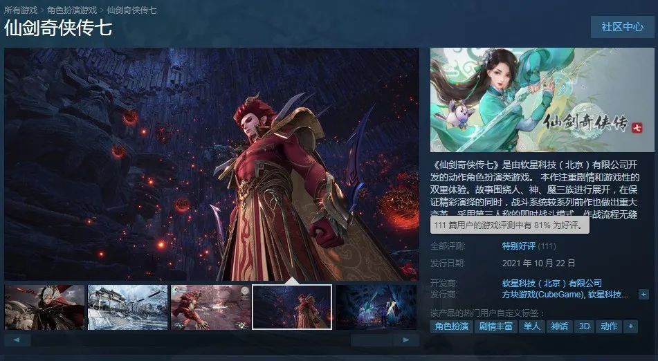 今日(10月22日)《仙劍奇俠傳7》Steam版正式發售,該作在Steam國區熱銷榜和全球熱銷榜均名列第一。可見玩家們還是很支持這款經典續作,他們迫不及待想要體驗。