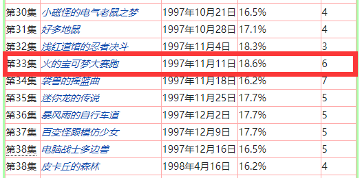 1997年放送的第一部《無印篇》,進入收視率榜單前10名的集數百分比高達 70% ,最高收視率有 18.6% ,平均收視率是 12.13% ,作為對比,日本最長壽也是受眾最廣泛的動畫《海螺小姐在同一年的最高收視率是 26.8% ,平均收視率是 20.3% 。
