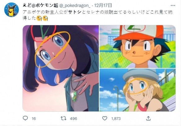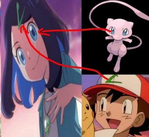但很快有人發現了,這件事並非沒有轉折——新主角莉可的V型發飾是小智曾經帽子上的圖案,還有通過二次元作品最好用的發色認親,莉可和小智都是黑發,而莉可那對水藍色的眸子,幾乎就像是畫師偷懶直接搬了《XY篇》女主角莎莉娜的兼用卡一樣。