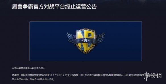 2.《魔獸爭霸》官方對戰平台將於2023年1月24日終止運營