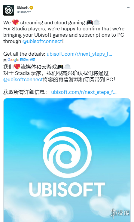 2023年1月18日谷歌雲遊戲平台 Stadia 將徹底關閉,育碧今日確認,在 Stadia 購買了育碧游戲的用戶,育碧將免費提供這些游戲PC版本,這些游戲將通過Ubisoft Connect 自動添加到用戶的游戲庫中。支持雲交叉保存的游戲,其游戲數據也會保留,但無法將虛擬貨幣從Stadia轉移到 PC,育碧提醒用戶,為避免丟失請在Stadia關閉服務之前使用虛擬貨幣。