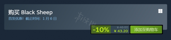 黑羊遊戲首發售價為43.2元,遊戲原價48元,遊戲的首發優惠算上冬季特賣活動將在1月6日結束。