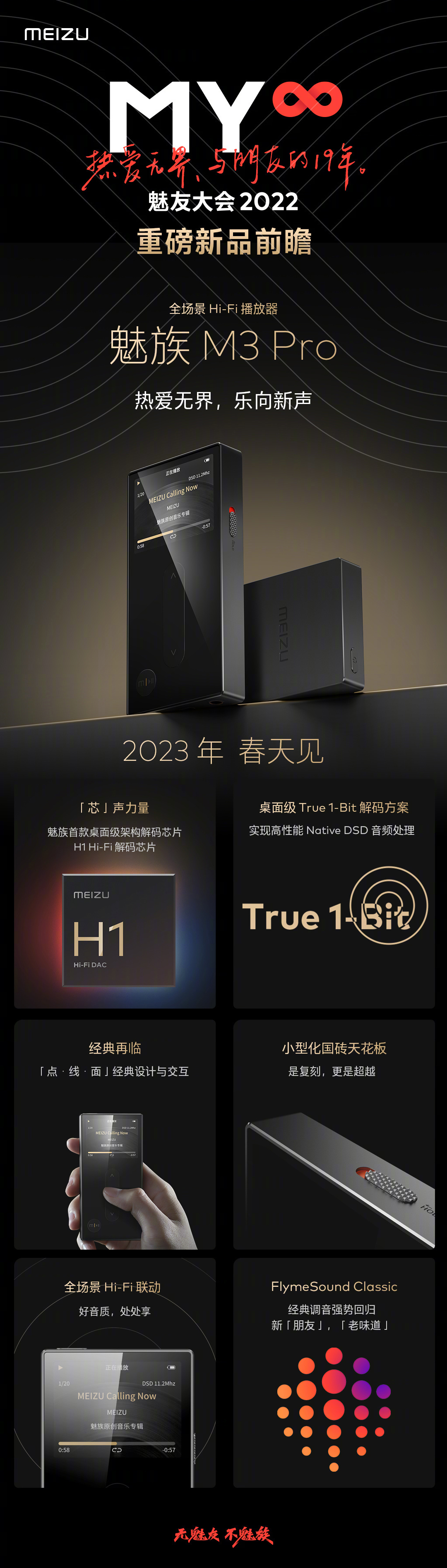 在今天下午的魅友大會 2022 上,魅族 M3 Pro 全場景 Hi-Fi 播放器亮相。
