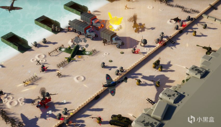關卡:第一種為沙漠戰場,坦克和飛機等會帶來巨大障礙。第二種為驚險搶灘,有地堡可供掩護。第三種為戰壕斗爭,可選擇 4 條不同路線進行刺刀衝鋒。第四種為攻城略地,選擇 4 種不同路線進行轟炸!