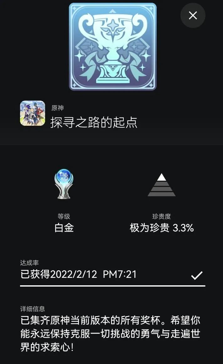 ,遊戲內的不同成就按照獲取難度分為銅、銀、金杯,達成「全成就」則解鎖白金獎杯,從觀感上玩家比起積分更喜歡獎杯一點,以至於現在成就的代名詞就是「獎杯」。