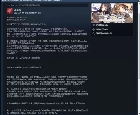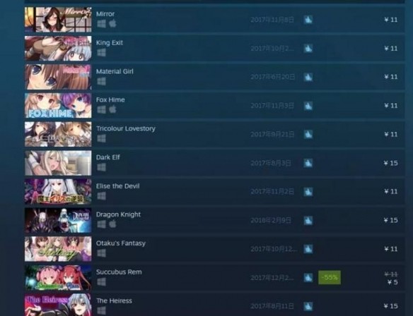 但好在,他們用一系列諸如「無條件退款」和「超低售價」將口碑往回扳了一些,Sakura Game還是逐漸站穩了腳跟,後來又靠代理許多日本DLsite平台上的小黃油,然後在steam上低價出售的策略打開了市場。