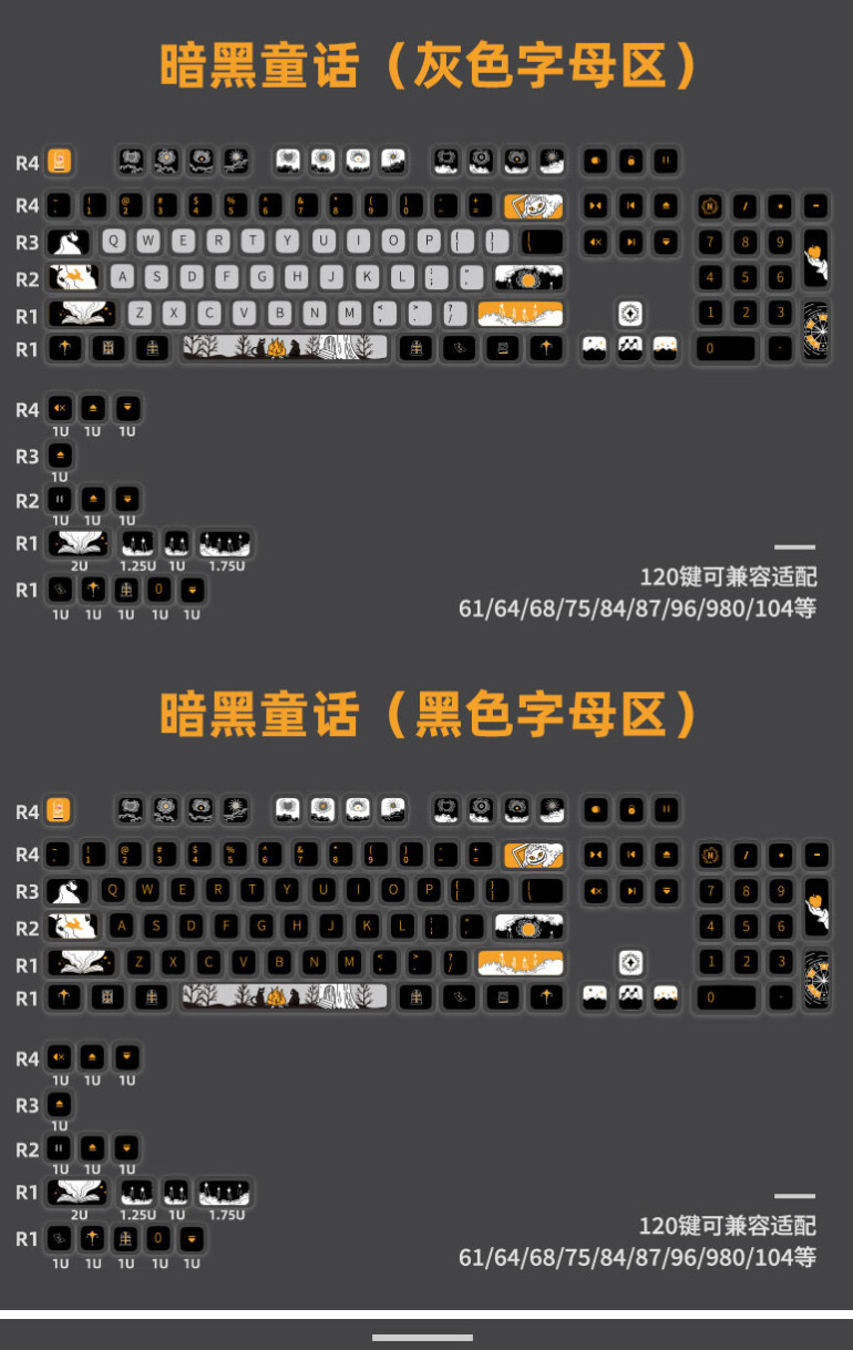 拾光龍 ASA高度 透光鍵帽暗黑童話 頂面PBT熱升華工藝(四周黑色透光) 120鍵 199元預售從12月24號至1月4號,預售結束後三天內發貨