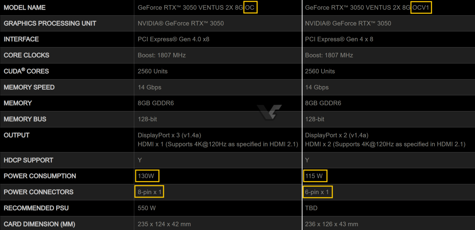 一年後的今天,NVIDIA的AIB終於推出了採用GA107 GPU的GeForce RTX 3050顯卡。NVIDIA的GA107 GPU的核心比GA106小,它提供3840個CUDA核心。將沒有理由更換PCB,因為兩個版本的引腳布局完全相同,兩者是兼容的。
